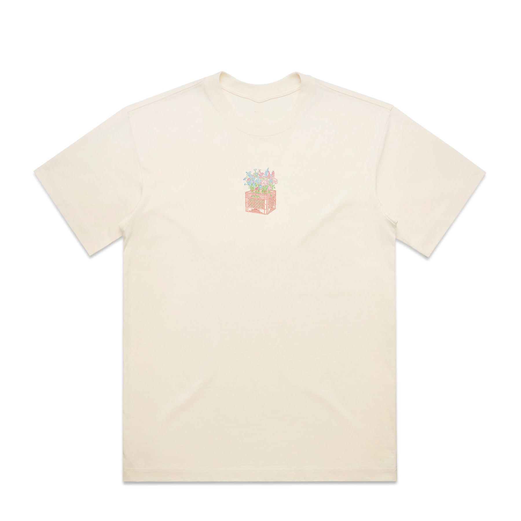 Este diseño representa el proceso: crecer donde te pongan, usar lo que hay y hacerlo bello. Las flores salen de una caja común, pero el mensaje no lo es. Color, paciencia y resistencia, ilustrados sin prisa.