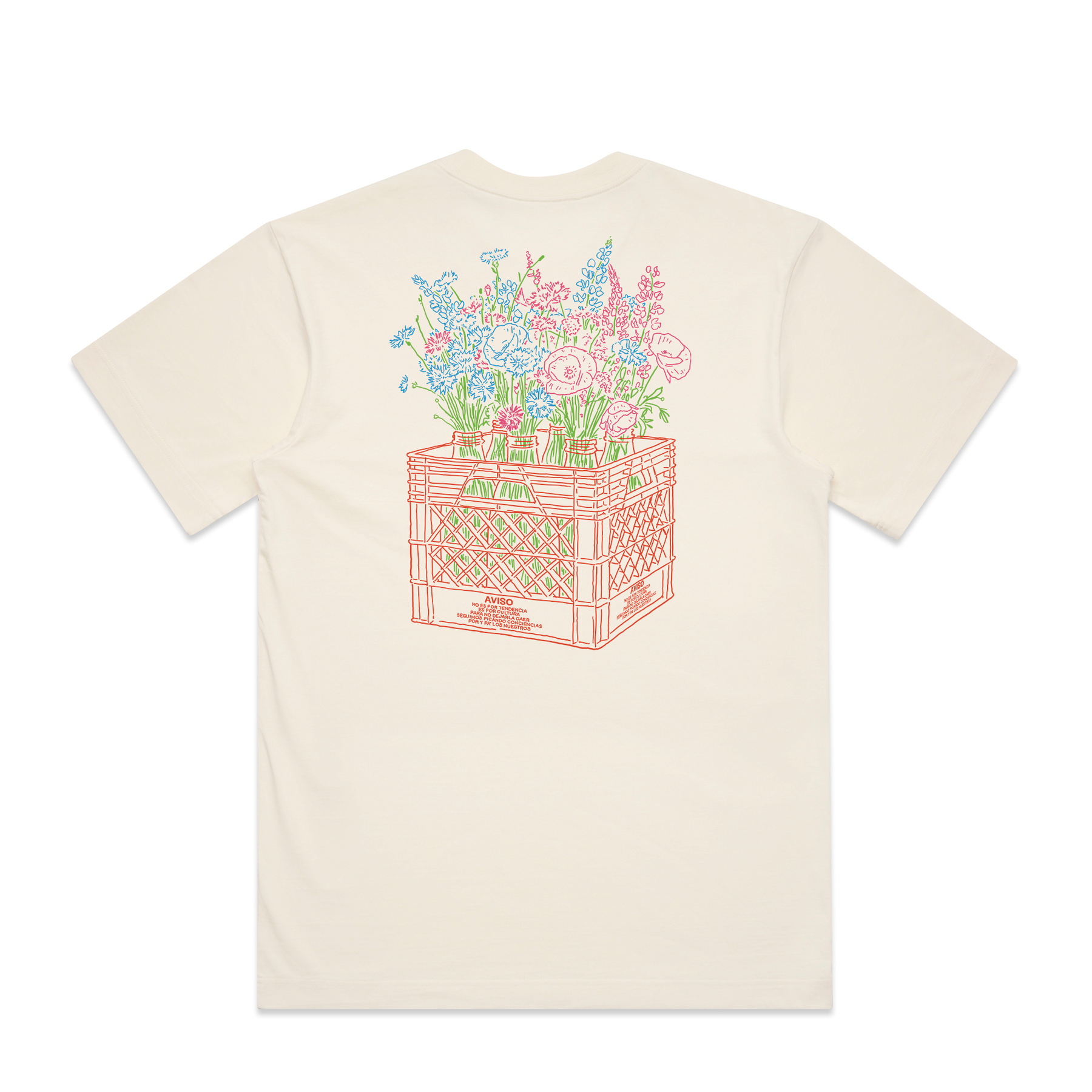 Impresión frontal en DTF y arte trasero en serigrafía, pensados para convivir con la pieza y envejecer bien con el uso. Parte del drop El Pitirre Florista, una colección sobre cultivar ideas, identidad y conciencia poco a poco, pero seguro.