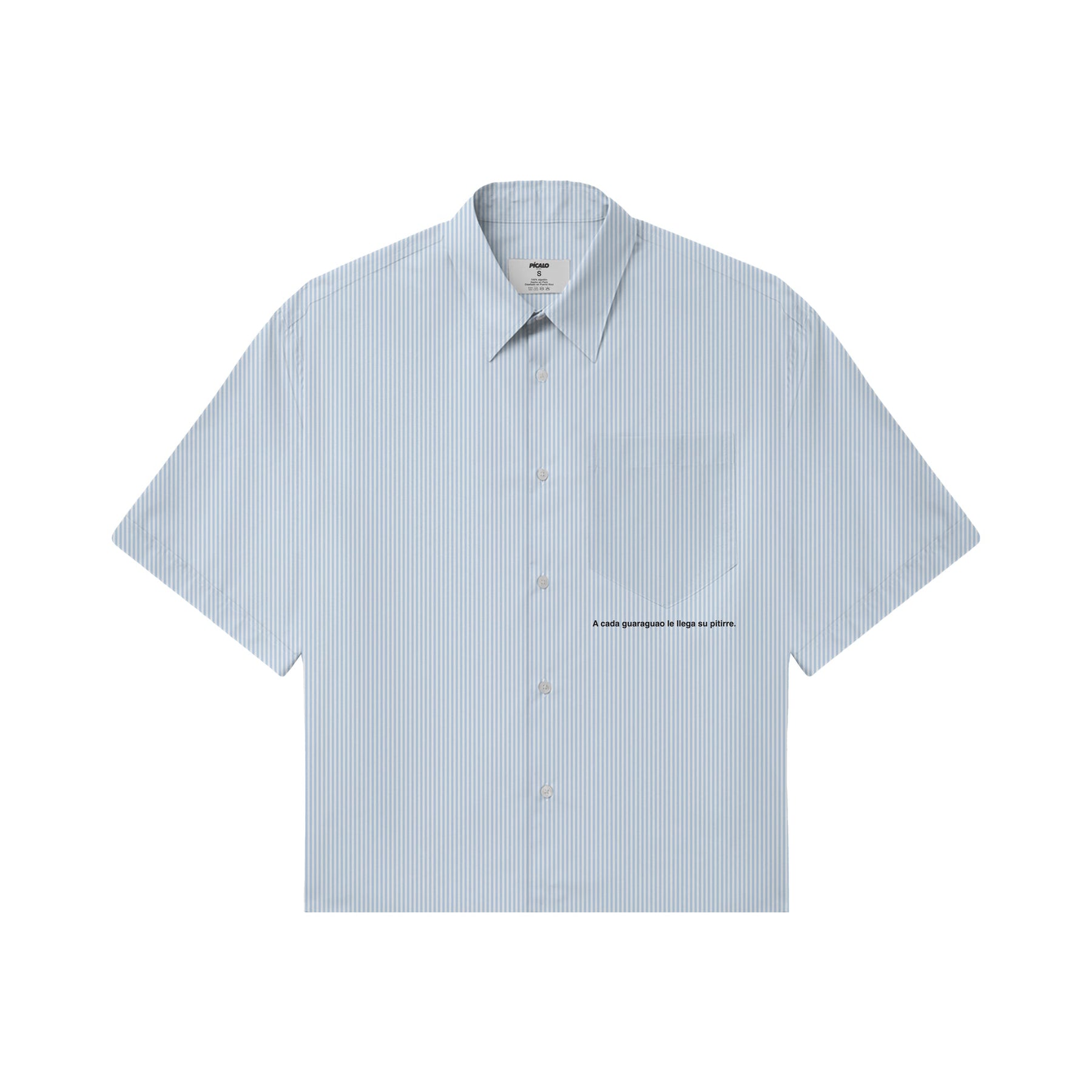 Esta camisa de botones oversized cropped lleva nuestra estampa icónica “A cada guaraguao le llega su pitirre”, un recordatorio visual —y cultural— de que el poder no siempre gana, y que la resistencia siempre encuentra su momento.